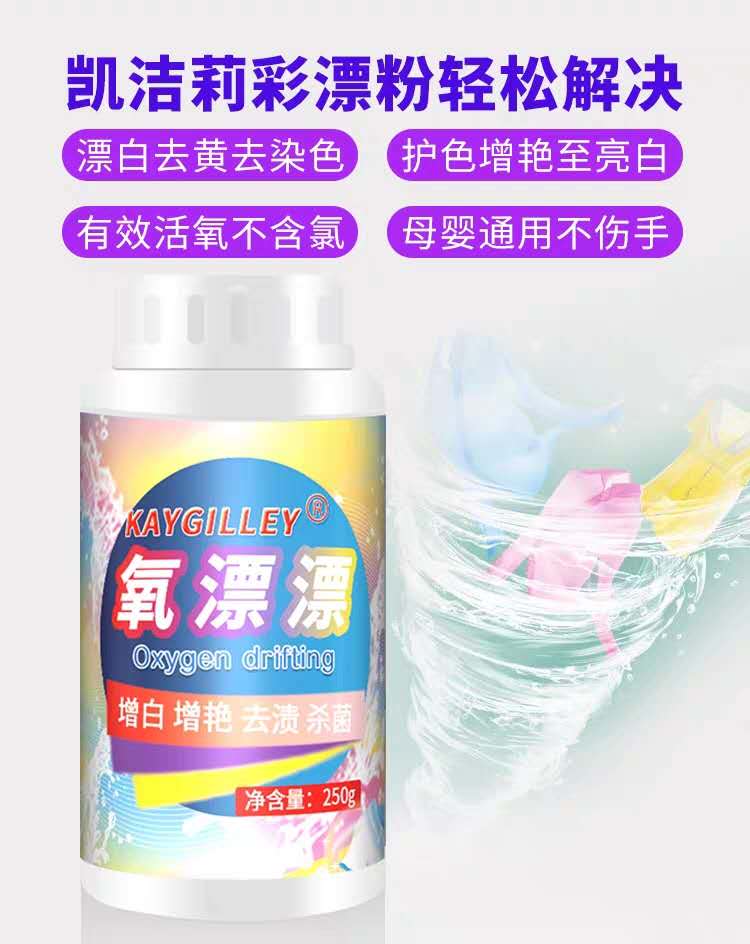 彩漂粉也叫氧漂粉是釋氧型漂白劑,溶于水后能生成過(guò)氧化氫,是氧漂的一種,它對(duì)織物的漂白較溫和,一般不會(huì)損傷織物,可令白色或有色織物漂白后色澤更亮麗。常用的含氧漂白劑主要是雙氧水和彩漂粉,有較好的漂白作用和殺菌作用。氧漂是通過(guò)在水溶液中經(jīng)過(guò)過(guò)羥離子游離出活性氧而產(chǎn)生漂白作用,在常溫下,它的漂白速度比較緩慢,為了提高洗滌速率,一般在高溫條件下進(jìn)行漂白,既提高了漂白速度,也增加了織物的的去污力和白度。